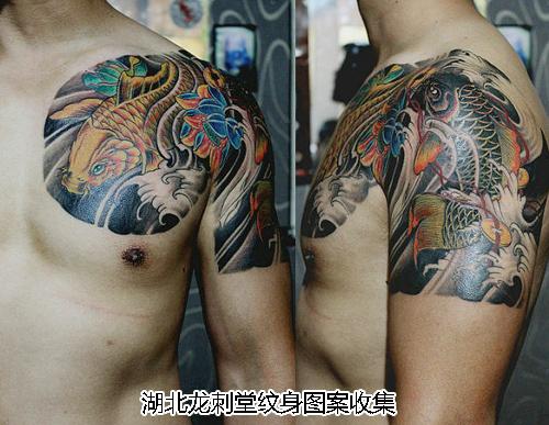 日本的传统纹身大部分是浮世绘风格,而且通常面积很大,半胛、包括全铠(全胛)、满背,内容主要是龙、鲤鱼、恶鬼、历史人物、神佛等。但是从没有欧美风格或图腾类图案来用作半胛纹身的内容的,这也是半胛纹身的一种特点之一。其二,半胛纹身大多是黑色的,这也是比较正统,正宗的。偶而也鲜见有彩色的半胛纹身,倒不是不好看,的确也有另一种锦上添花的视觉感观。