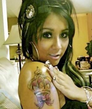 snooki在家里自拍,展示了她的手臂上部新皇冠纹身图案