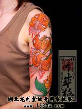 背部红色莲花纹身图案女人纹身图案大全武汉